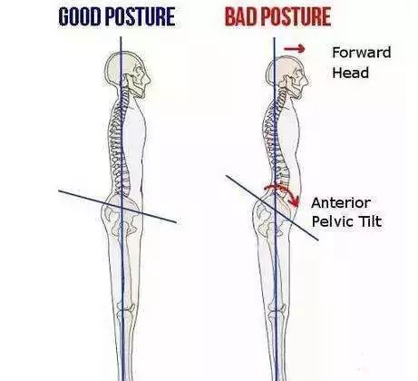 如果骨盆产生了微小变化,力量传导至上下肢就会被不断放大,会引发很多体态问题。所以你就明白为什么很多猥琐脖、驼背、膝超伸看似离骨盆十万八千里,但其实都跟骨盆前倾有关。