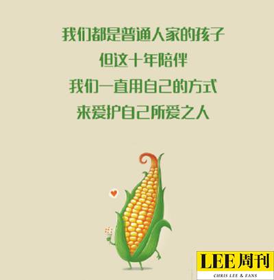 十年来,玉米一直享受着前线的玉米提供的免费共享的资源,从图片、漫画到音频、视频。免费的资源共享在玉米地是一个从没约定却达成默契的一个长久的习惯。正是他们的无私付出,免费发布,才让更多的人去了解李宇春,爱上李宇春。