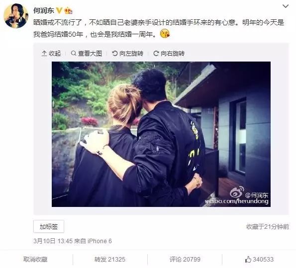 何润东在微博po出与女友Peggy背影照,交往8年后登记结婚,还戴上女方设计的结婚手环秀!恩!爱!