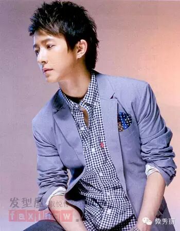 谁说男生不能留刘海的,韩庚这就来为你纠错,一头蓬松的谢瑞华短发发型,不仅清爽利落,同时还能完美修颜哦,露出迷人的笑脸,让妹纸如何不爱。