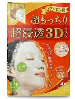 3D立体剪裁服贴无缝隙!润泽柔软包覆全脸,紧贴鼻翼两侧、眼周及下巴肌肤。含蜂王乳、大豆异黄酮、虾红素成份,导入深层角质,使肌肤饱水润泽。超细小分子易吸收,清爽无黏腻感。还有收缩毛孔的效果。