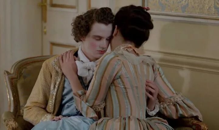 18世纪的法国也没落下,贵族男性都流行戴假发,涂香粉,还抹红嘴唇和点痣。