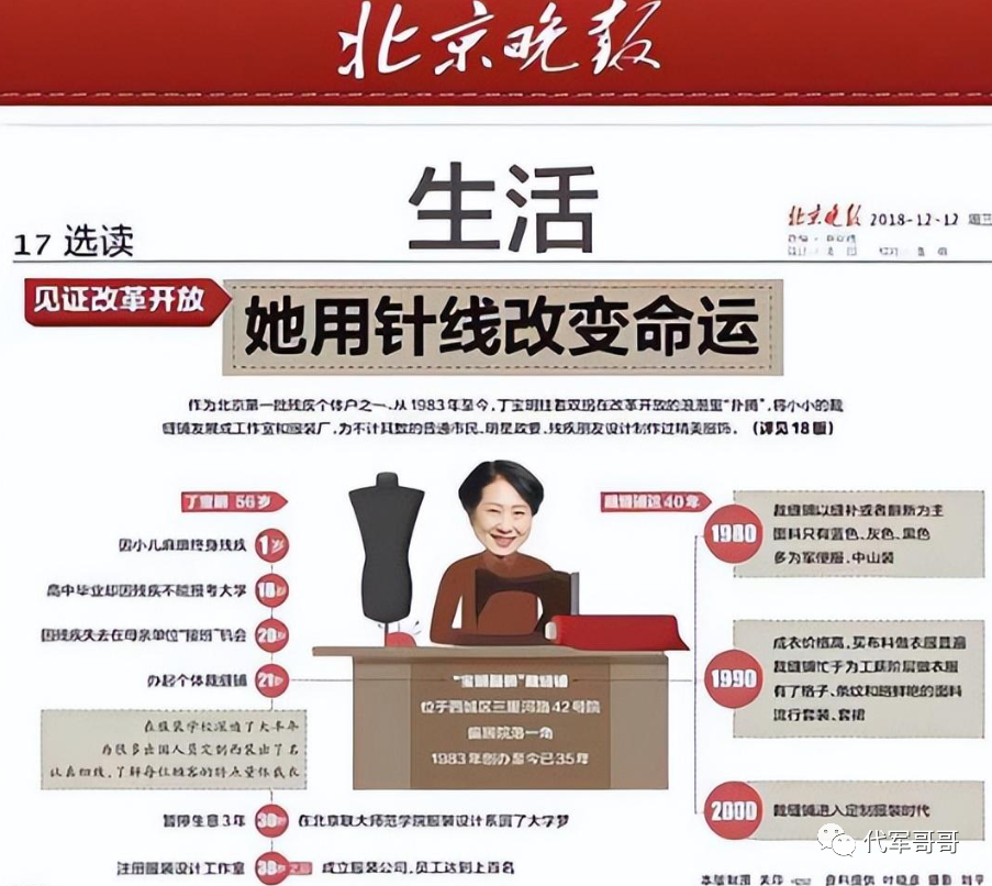 2018年,北京晚报发出残疾人丁宝明,靠着自己勤劳的双手,成立起服装公司的故事。