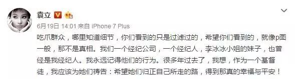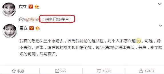 不难看出李家姐妹可以说是感情十分的深,对此袁立却是一针见血的回应了6个字:税务已经在查!而袁立这背后的意思相信大家一定是很清楚了。原因也很简单,那就是当年李雪和李冰冰与华谊之间也牵扯到了不少的关系。这简单的6个字不仅仅是把李冰冰与华谊的过往交待清楚了,也暗示袁立对李家姐妹的看法。