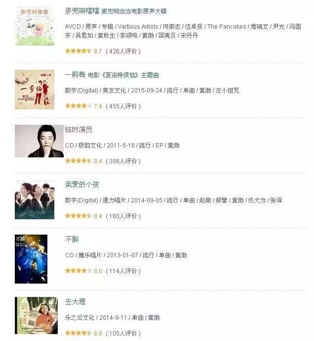 本来就是歌手出身的青岛贵妇,这几年时不时在电影中展露歌喉,豆瓣音乐中黄渤的歌曲一眼望去,也是8分以上占据大部分,实力派!