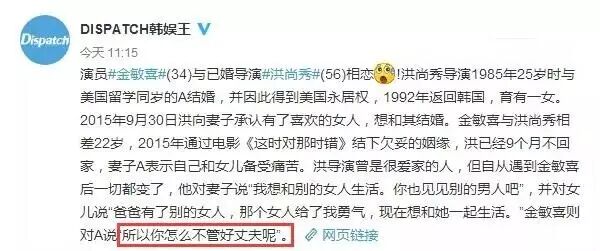 洪尚秀妻子曾过找金敏喜,但她回答说“所以怎么不管好自己的丈夫呢”。