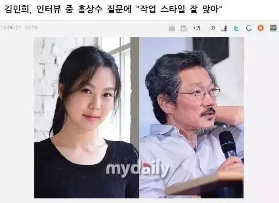 据韩媒报道,金敏喜是在2015年出演洪尚秀导演的《此时对那时错》后没多久就与对方发生了“不正当关系”,并一直维持至今,而她连续出演两部洪尚秀导演的作品,被疑也是因为两人之间的特殊关系。