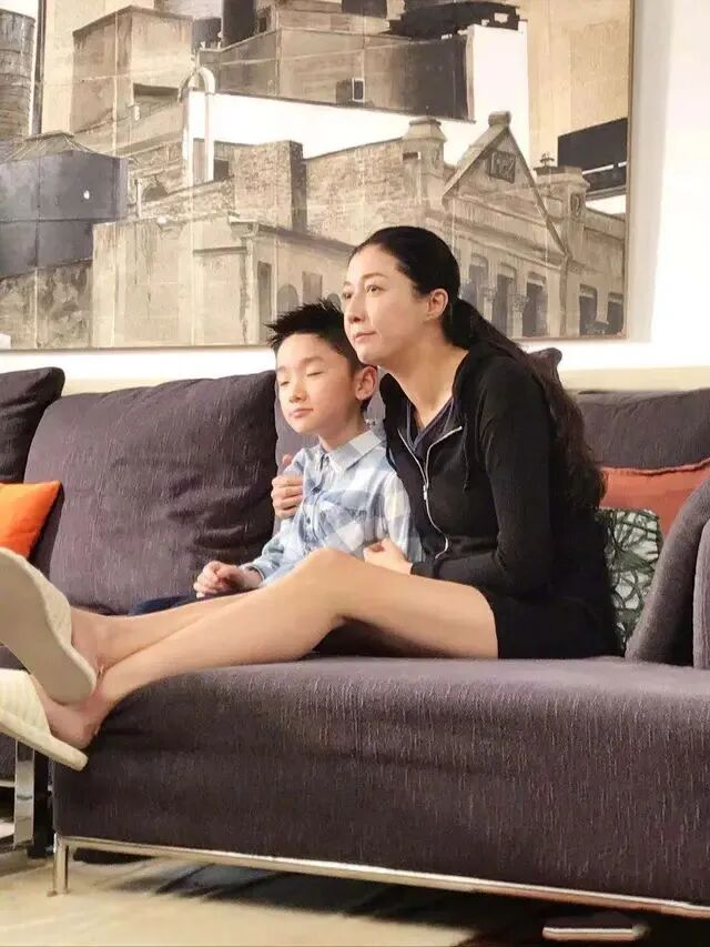 吴绮莉这个时候是带着自己的儿子,而且坐在家里面的沙发上面,虽然说下面的那一双腿看起来挺美的,但是整个人的打扮看起来还是有点显老,而且头发就弄成了一个低低的马尾,身上穿着这件外套选择的是紧身的设计,就是这个时候有点弯腰弓背了!