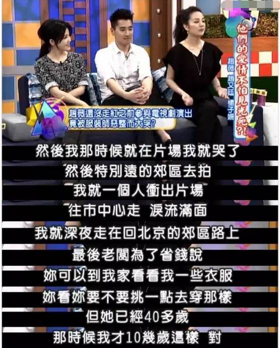 拿到这件衣服赵薇就哭了,自己深夜从片场往市中心走,最后还是老板为了省钱让赵薇去她家挑挑衣服穿,但老板已经四十多岁,那会的赵薇才十几岁 衣服肯定也是不合适的。
