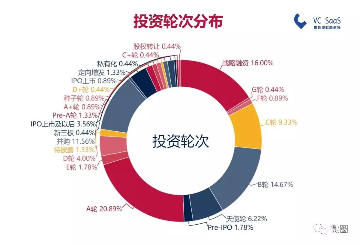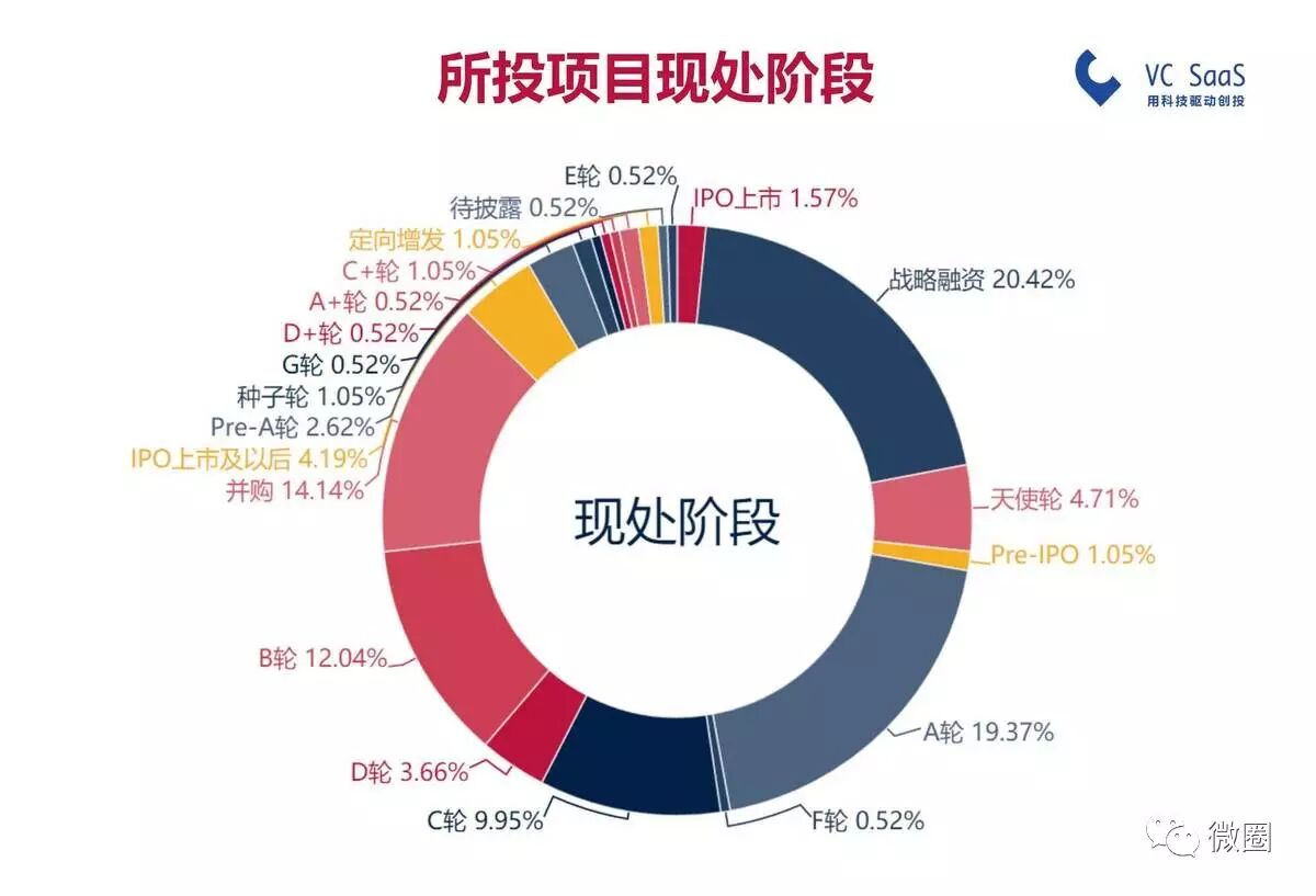 阿里资本投资最多的项目是在A轮(20.89%)、战略融资(16%)、B轮(14.67%),另外阿里真的是一言不合就并购,并购率高达11.56%。