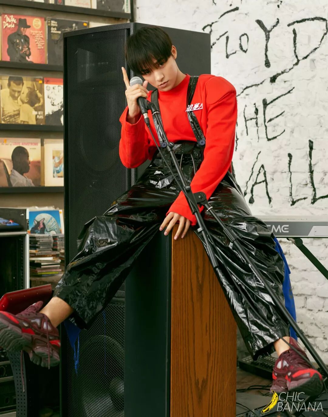 红色垫肩饰卫衣热烈抢眼,天生C位焦点,漆皮质感背带裤带你重温90年代的闪亮酷感,红黑拼色老爹鞋帅的没商量,皮革长手套开启制胜按键。伍仁们快来跟着追梦人小伍一起乐(yue)乎,乐(le)乎!