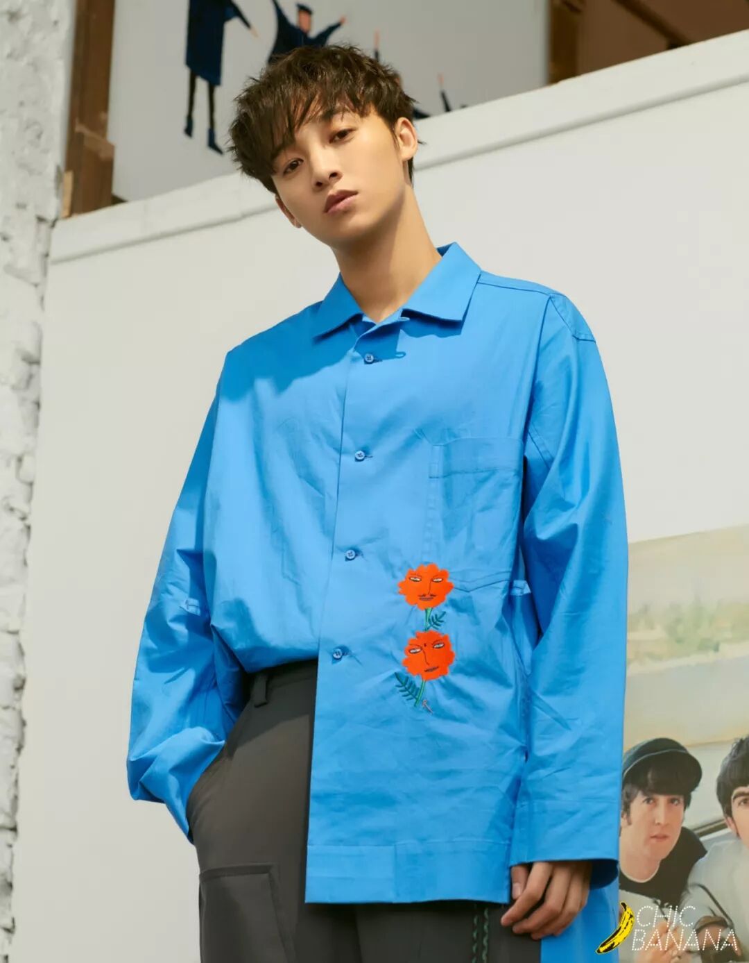 宽松湖蓝色衬衫清爽简约轻松吸睛,花朵刺绣装饰平添趣味。