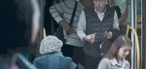 第二天,和婆婆一起搭公车,提着婆婆装菜的小推车,简庆芬仿佛看见瑞贝卡从公车上下来:
