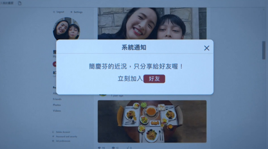 看到简庆芬和儿子的照片,瑞贝卡纠结要不要加好友,然后赶紧合上了电脑。