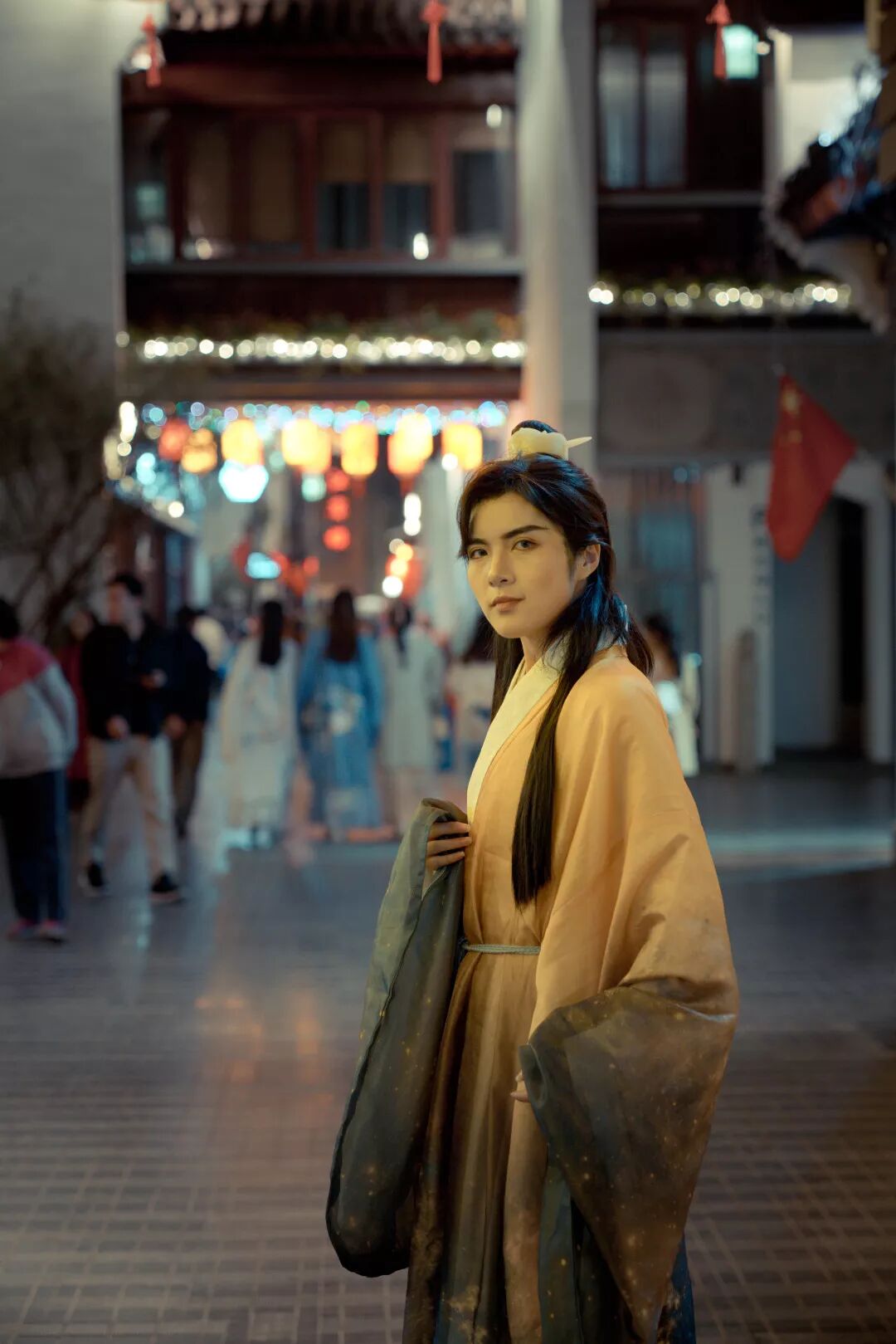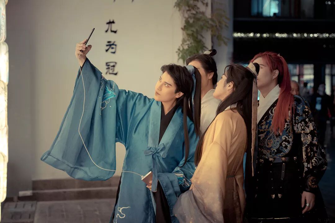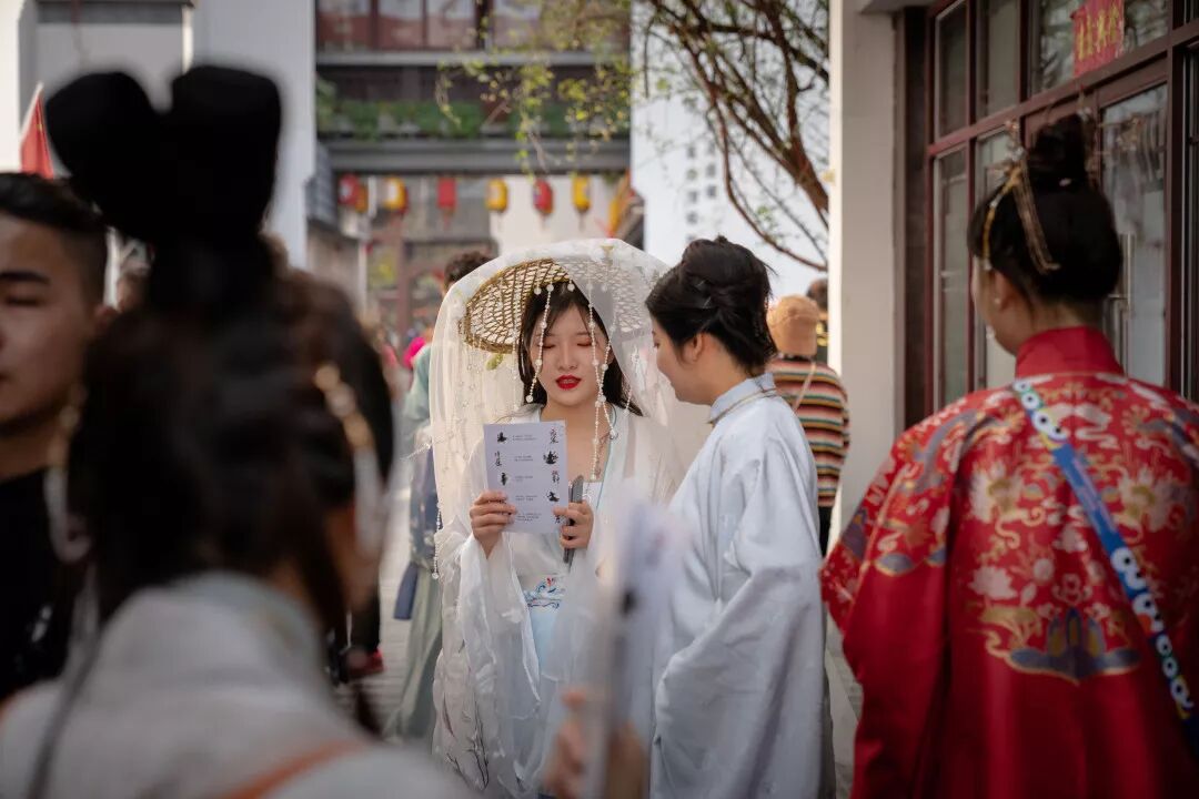 青砖小瓦之中,广袖飘飘;流光溢彩之间,衣袂摇摇,身着汉服的男女翩跹而过,身着汉服的孩童欢快奔跑。
