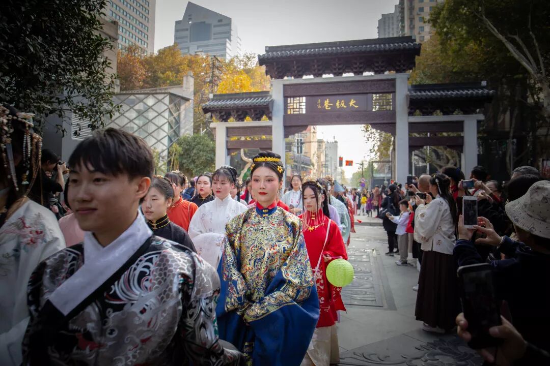 青砖黛瓦,白灰勾缝,雕花围檐,回廊连环,自古以来,熙南里就是南都繁会之地,是明清时期以来南京城最繁华的商业中心,有着历史延续最长的城市肌理及风貌。在这里举办汉服节,文化体验感与众不同。