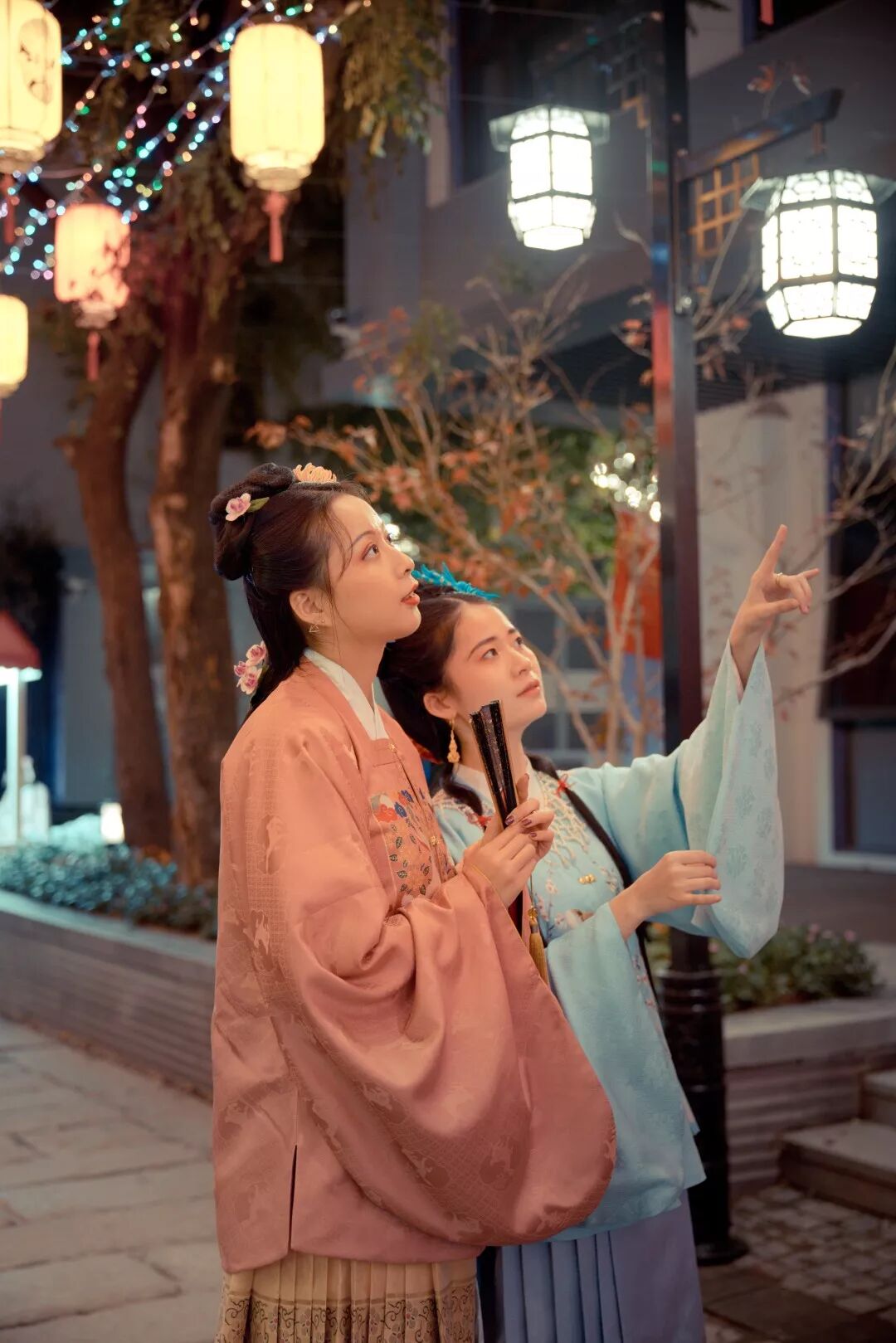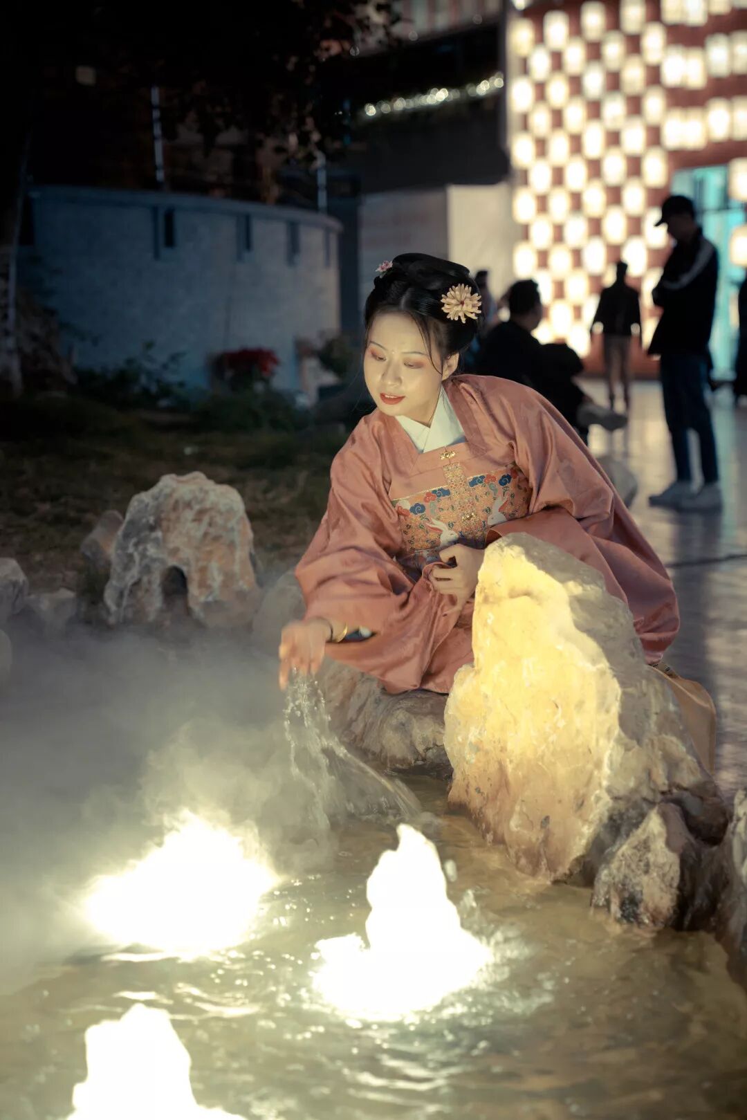 入夜后,汉服节的活动更加精彩,流光溢彩的亮化加上古风古韵的汉服,构成了街区最靓丽的风景,夜游客流也因此大增。熙南里的夜间亮化做得非常有特色,从牌坊入口一直到街区内部,不同的建筑配以不同主题的亮化,别有一番风味。