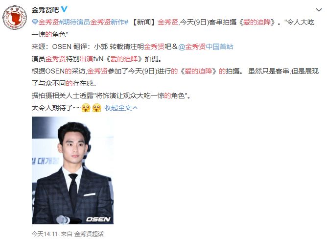 金秀贤确认出演《爱的迫降》,角色会让观众大吃惊 酸豆君 日韩男星 2020-01-09 22:10:12 1102 创作不易,用心坚持,欢迎请BaGua喝几杯爱心咖啡!打赏并支持本文 打赏并删除本文 《来自星星的你》大家一定都十分的熟悉,“都教授”金秀贤在其中可谓是俘获了万千少女的心,堪比是“芳心收割机”,在那之后,大家一直很期待他的新作品。虽然去年在《德鲁纳酒店》中金秀贤也特别出演了,但显然不少粉丝是看得意犹未尽。今日,根据韩国媒体报道,金秀贤客串参加了近期大火的电视剧《爱的迫降》的拍摄,并表示他所饰演的角色,将会让观众非常期待,甚至会有大吃一惊的感觉。据说金秀贤这次参加《爱的迫降》的客串演出,也是由于当时《来自星星的你》合作过的作家的邀请,当时两人建立了非常深厚的友谊,也是在工作上互相帮助,互相配合。这次消息传出后,粉丝们真的非常期待。金秀贤和玄彬两大男神同台飚戏,肯定很精彩,只是不知道“都教授”会以何种身份回归呢? 创作不易,用心坚持,欢迎请BaGua喝几杯爱心咖啡!打赏并支持本文 打赏并删除本文 感谢您的支持鼓励,我会继续努力的!文章地址:用户邮箱:打赏金额:USDT 请输入数字点击”去打赏“,即可进行打赏支持本文章哦 金秀贤 About the Author 酸豆君 功能介绍:影视资源推荐,影视资源分享 Related Posts 汪苏泷恋情曝光!被女方狂亲后毫无波澜并喝了口水... 2021-05-25 20:30:12 彭于晏出柜唐禹哲? 2021-01-27 16:00:24 曹格12岁儿子"发育过猛",近照嘴角胡渣抢镜,曹格称他为哥们儿 2020-12-01 19:24:29 杨紫公开致敬,巅峰时赔光家底隐退,84岁成正向网红,这演员真飒 2020-01-23 23:36:29 金秀贤确认出演《爱的迫降》,角色会让观众大吃惊 2020-01-09 22:10:12 发表评论
