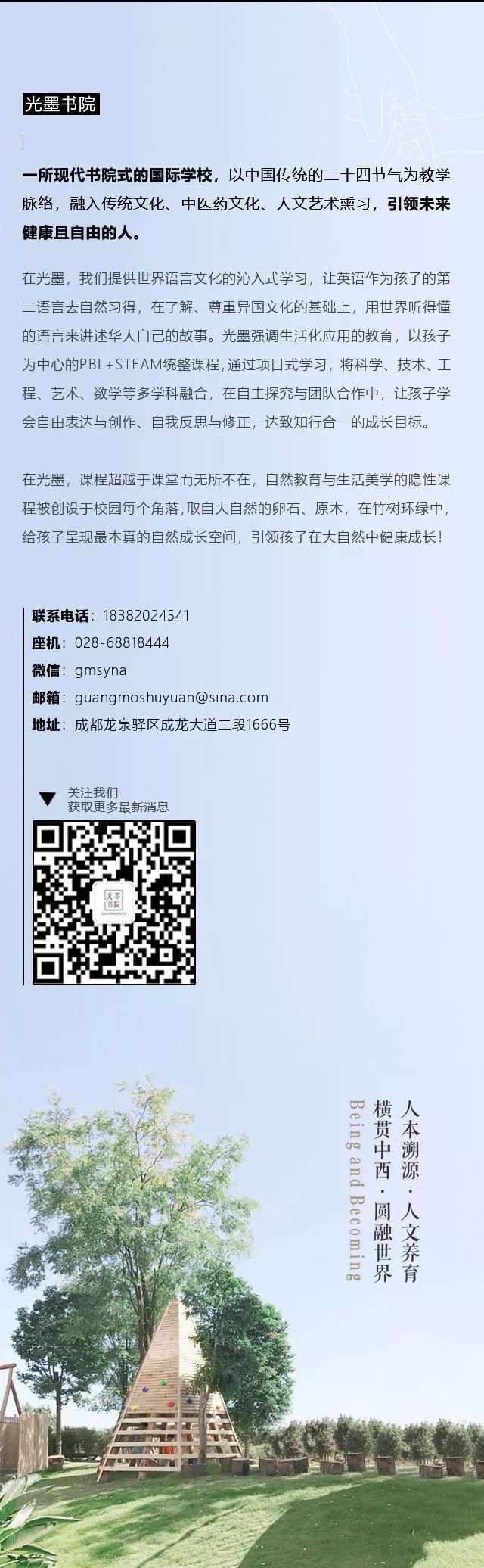 我们愿意与大家分享光墨的每一个变化,每一点进步。我们希望大家能够感受到:关于未来的教育将如何真实地在光墨发生,如何用一种开放的视野看待、接纳创新教育。