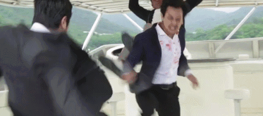 饰演反派的新人演员栢天男就在采访中诉苦,游艇上的一场打斗戏膝盖、手、头就都受伤了。