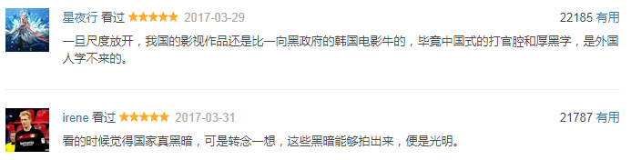 评分8.2,口碑炸裂。“一旦尺度放开,我们影视作品还是比韩国电影牛”的评论都有2W+的赞同。