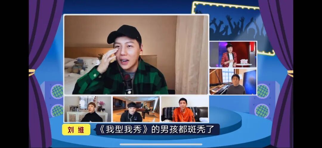 本期《今晚生活秀》邀请到了曾活跃在东方卫视《我型我秀》舞台上的几位音乐人,薛之谦、刘维、唐汉霄、罗开元、俞思远一齐上线,他们就像许久未见的同班同学,调侃这样的云聚会“有一种上网课的感觉”。几个大男孩凑在一起,免不了彼此吐槽,从发际线到居家装饰无一幸免,薛之谦展示了被老爸剃坏的头发,遭到刘维的无情“嘲笑”:“我型我秀的男孩都‘秃’了”。