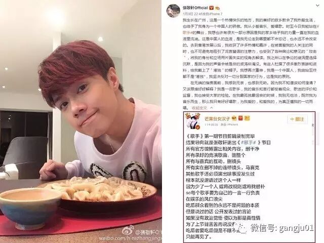 其實張敬軒日前(9日)在微博發表長文澄清「港獨」爭議,說:「我是一個中國人,我由始至終都不是『港獨』,我堅決反對一切分裂國家的行為,這是我的原則。」電視台對為何刪除張敬軒的微博未有正面表態,但據悉原本月19日該節目舉行的新聞發佈會將會取消;張敬軒所屬的英皇娛樂,稍後才作統一回應。