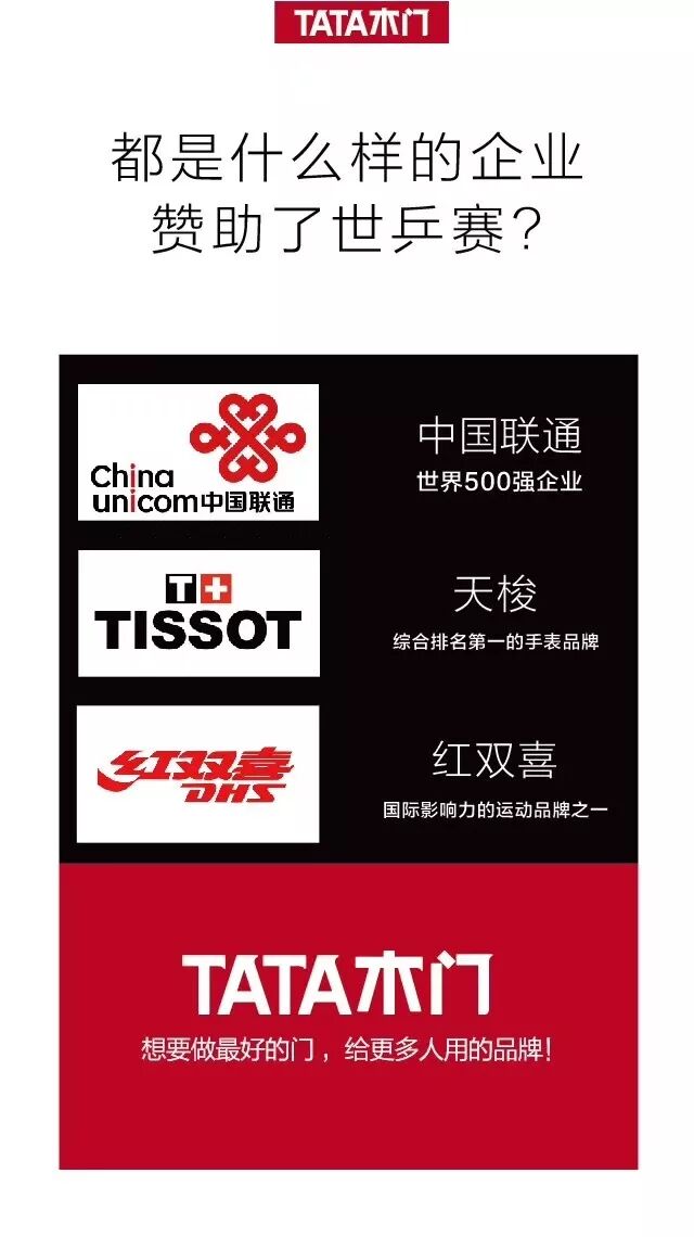 “We are TATA,We are young!” TATA木门用专注和实力树立了木门行业标杆,用“做最好的门,给更多的人用”这一企业理念打动着每一位消费者,同时,也打动了国际乒联与TATA木门签下“四年之约”。成功的路上没有捷径,唯有努力才能赢得喝彩。