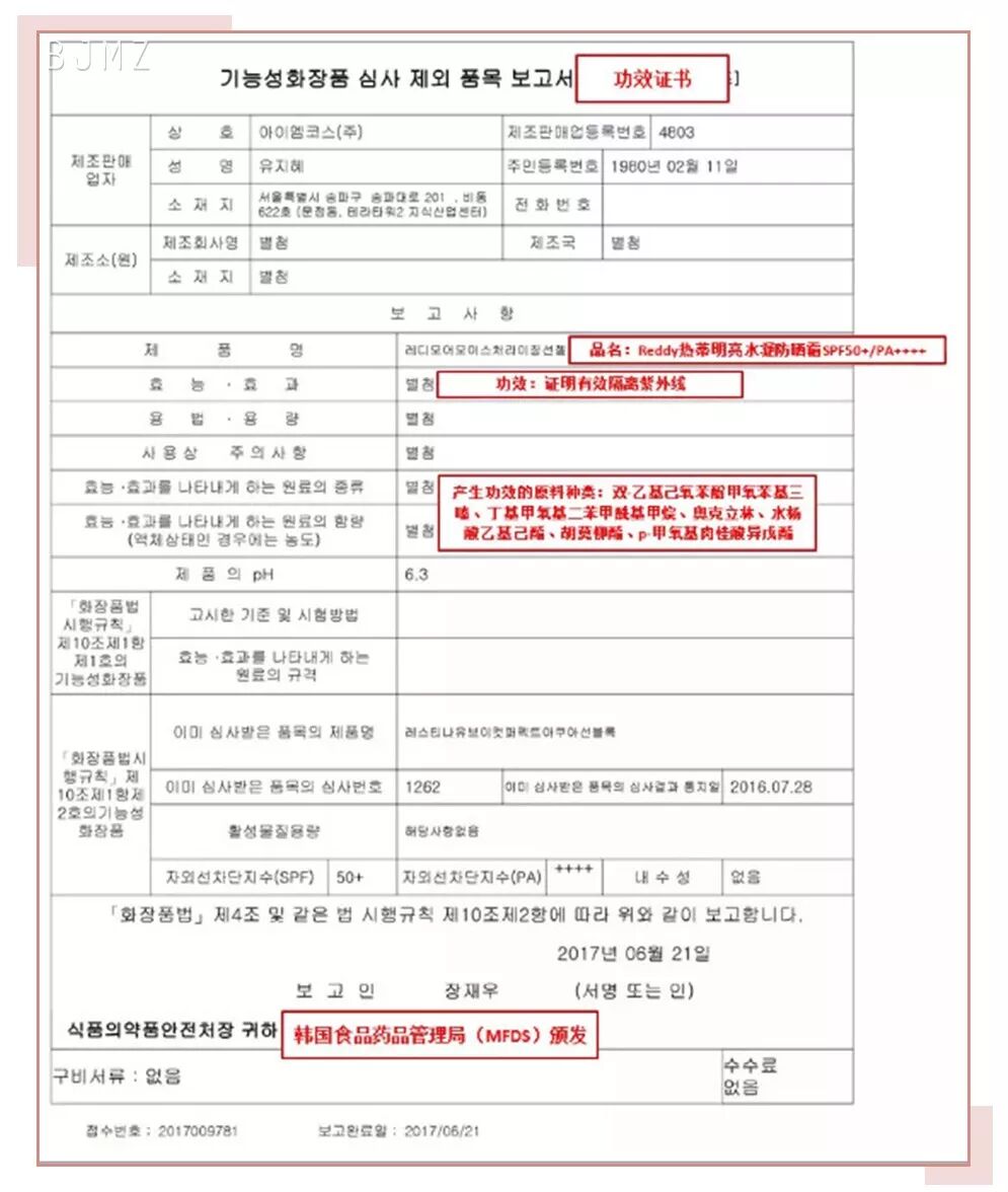 它还荣获了韩国食品药品管理局MFDS颁布的防晒产品认证书,并通过了专业证明是一款有效防御紫外线的一款防晒霜,安全有效。