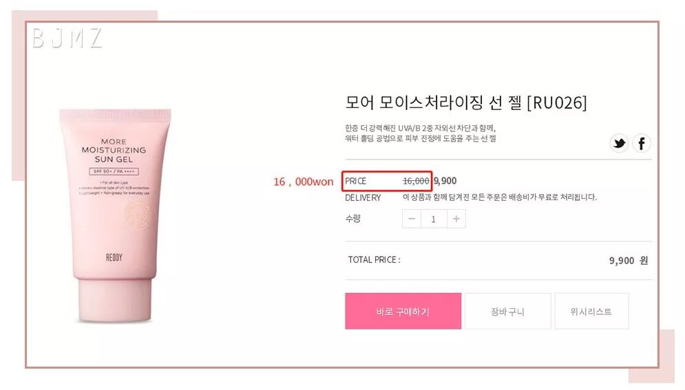 这款防晒霜在韩国原价是16,000won,约96软妹币,现在购买只需要72元!小扒也是趁现在优惠力度大多囤了几瓶。