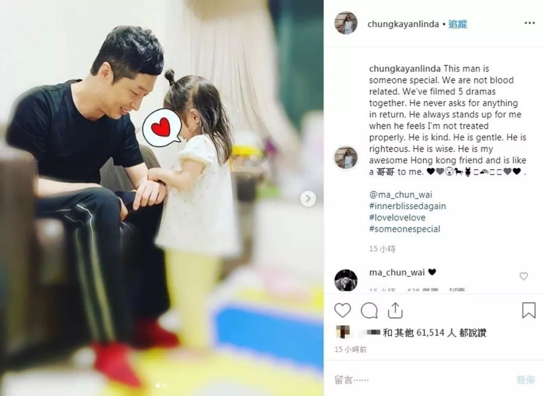 钟嘉欣在IG发文,坦言「契哥」马浚伟在她心目中是特別的存在