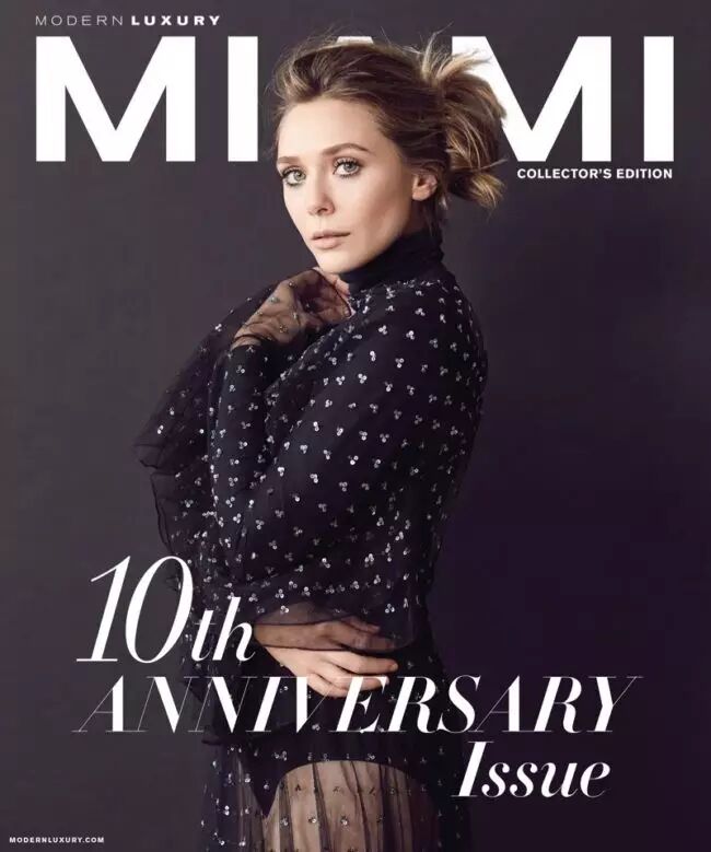 因演出 Scarlet Witch (緋红女巫)一角而走红的Elizabeth Olsen,美丽的样貌与气质受到大家喜爱,而她的迷人魅力,也让她登上由Modern Luxury集团出品的美国奢华生活杂誌《Modern Luxury》全系列9月号封面,一口气囊括《Philadelphia Style》、《Angeleno》、《Boston Common 》与《Miami》共5刊的封面女郎,可见Elizabeth势不可挡的当红指数。