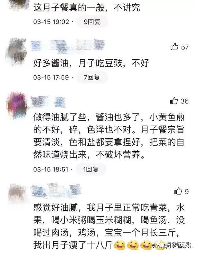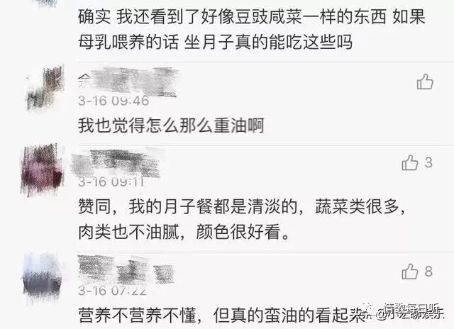 当然,凡事有两面性,有网友称赞好,当然也有网友评价很一般,大概每个人的口味不一样,有的网友平常饮食偏清淡一点,所以看到张歆艺的月子餐时,忍不住评论说过于油腻了;也有网友说好像看到了豆豉和咸菜,月子吃这些偏咸的食物不太好,不过其实哪些也有可能是纳豆!一时间张歆艺月子餐一般,张歆艺坐月子不讲究等话语成为了网友主要表达的亮点!