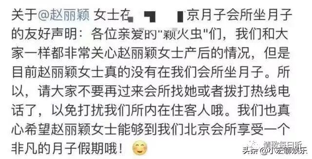 除此之外,出院后的赵丽颖动态又成了一大波人关心的焦点,大家都知道,明星出了医院一般会到高端的月子中心坐月子,不知道是谁传出了赵丽颖在某个月子中心坐月子的消息,于是该月子中心便没安宁之日,不少网友为了确定赵丽颖在不在该月子中心,经常拨打电话询问工作人员或者是亲自上门寻找赵丽颖,这不为了不打扰其她在月子中心坐月子的客人,该月子中心还特意艾特了赵丽颖,并且说明颖宝并不在她们月子中心。