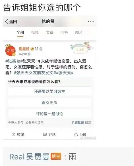 比如网友爱磕《爸爸去哪儿》里他x贝儿的cp,他就能在网友的起哄下,故作不情愿地给贝儿发私信。