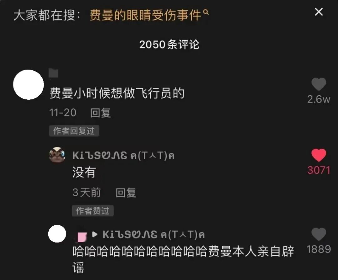 比如在网人玩咯噔文学,说费曼从小想当飞行员,但因在《爸哪》里眼睛受伤梦想破灭时,费曼亲身下场反矫辟谣,直言“没有”。