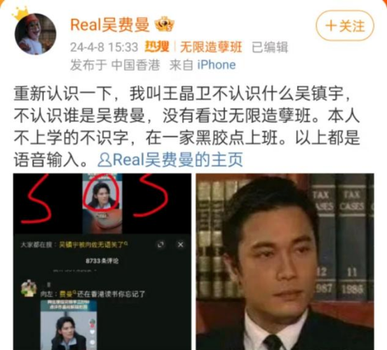 “不认识什么吴镇宇,不认识谁是吴费曼。”