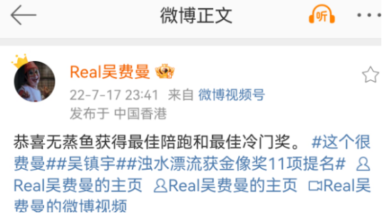 点进费曼的微博搜索“吴镇宇”,可以找到:
