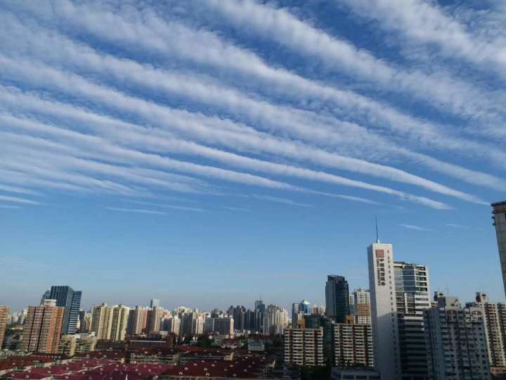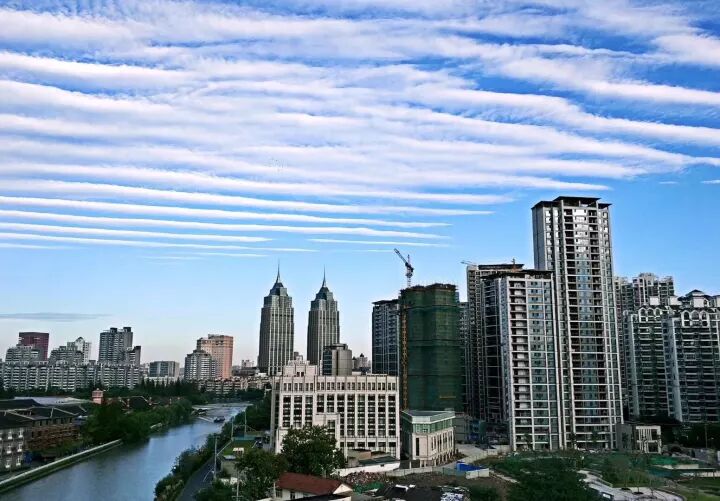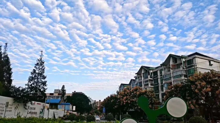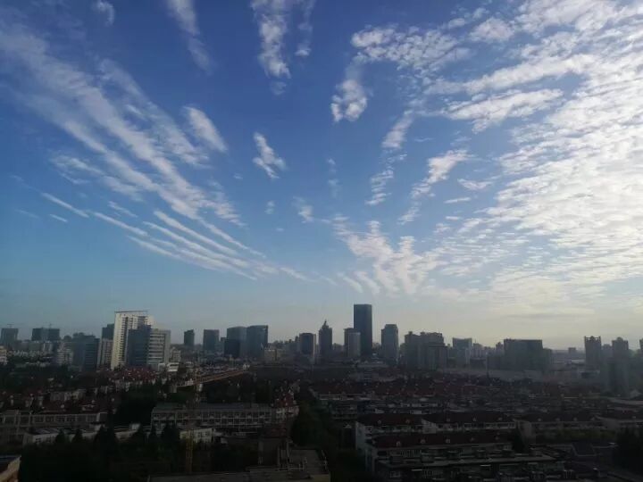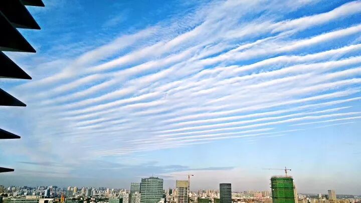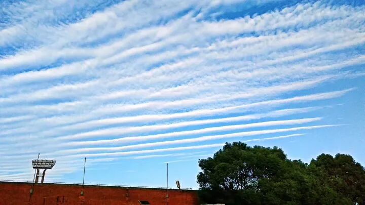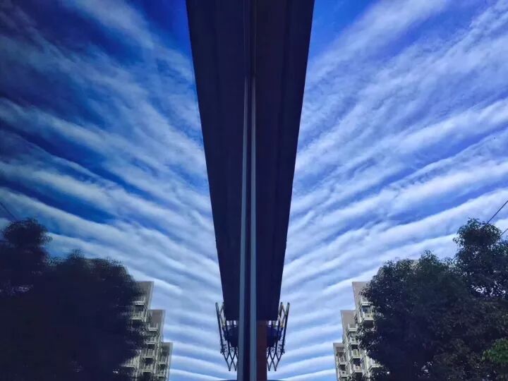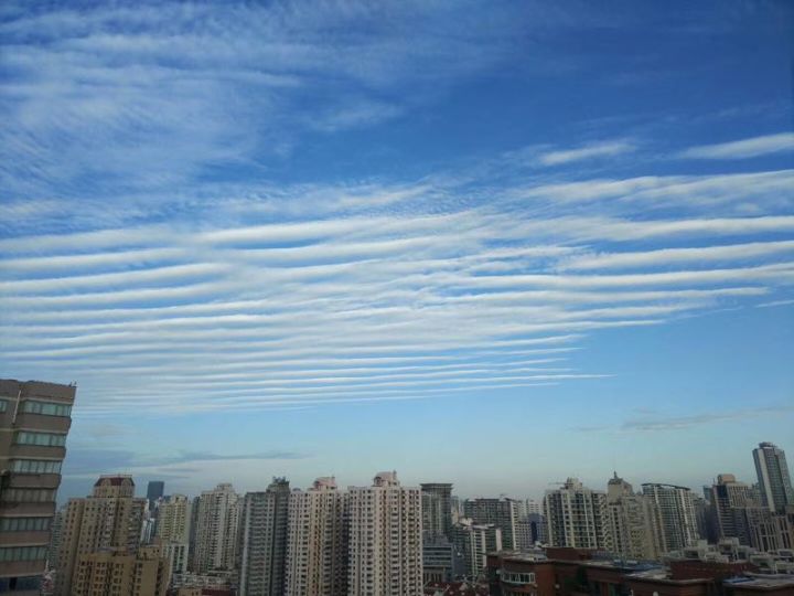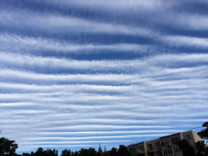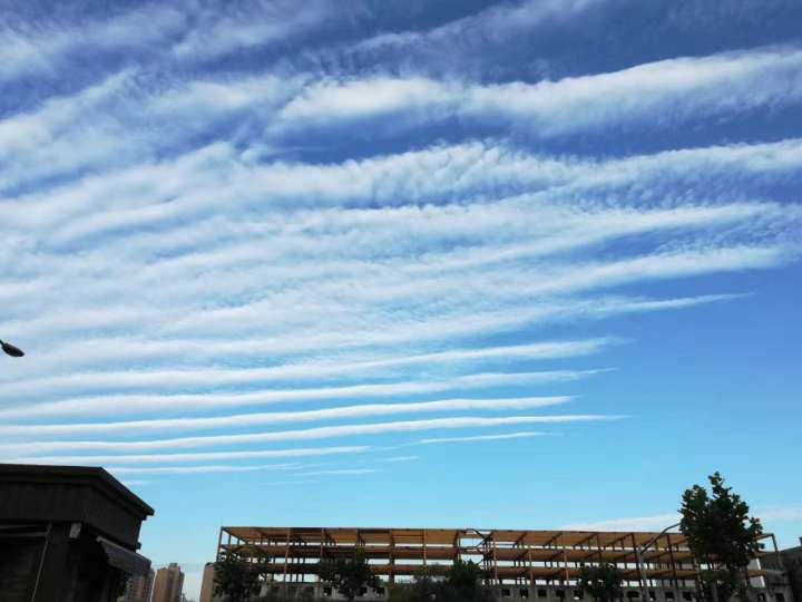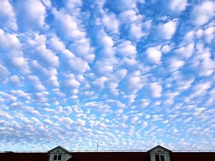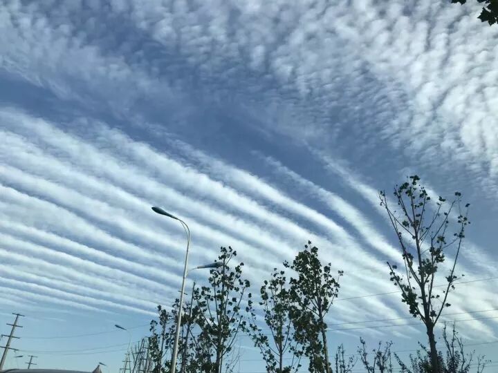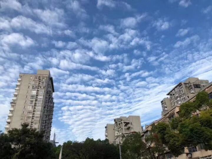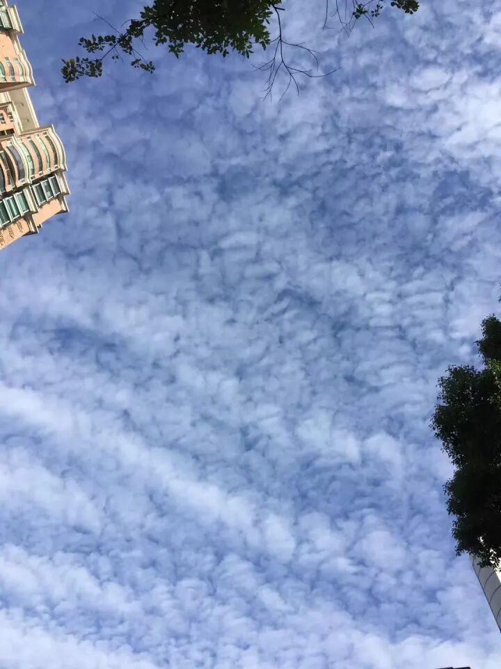 今早出现的叫做“高积云” ,主要是透光高积云 ,呈现出波状、絮状、鱼鳞状等。