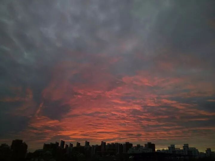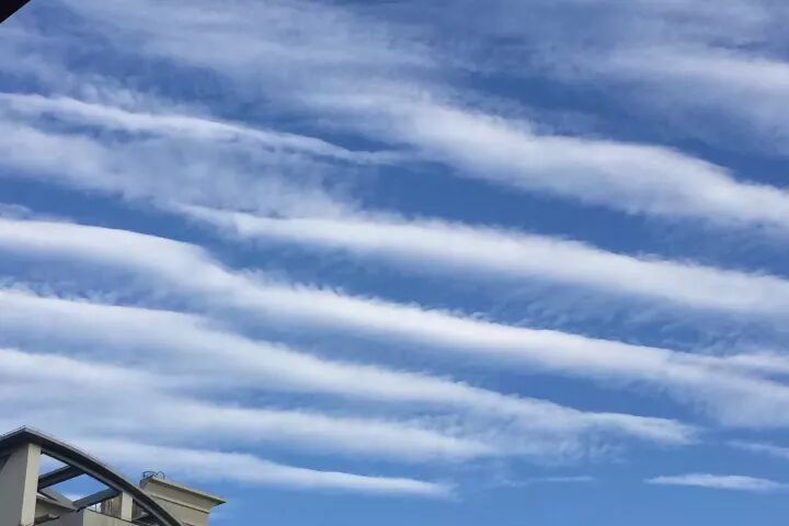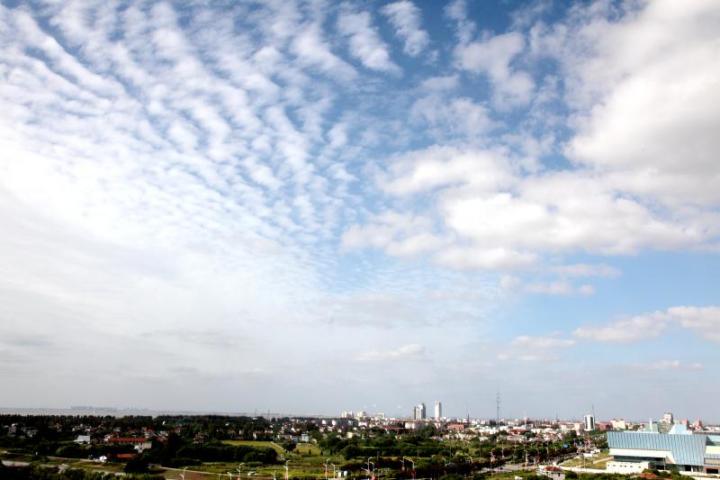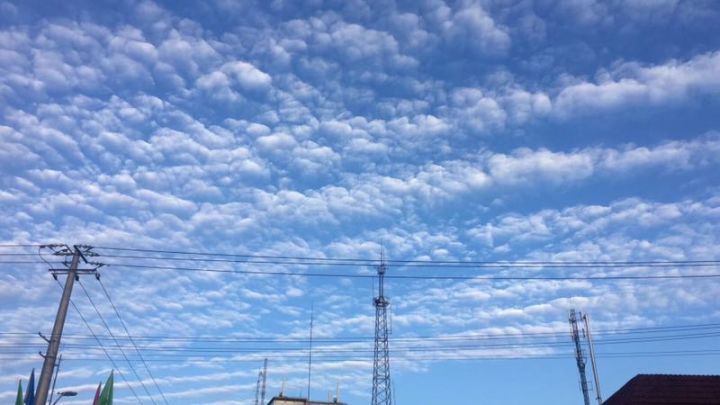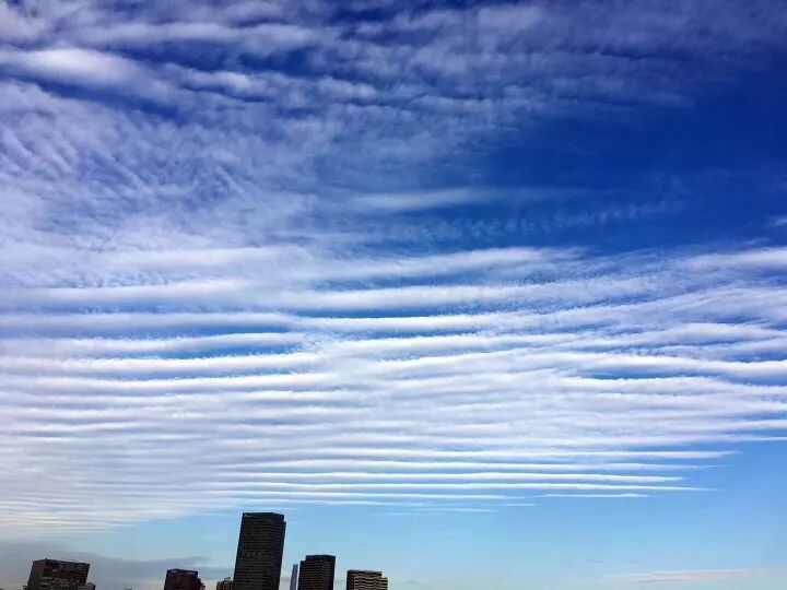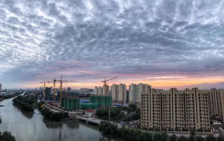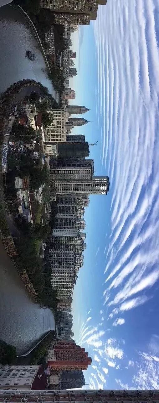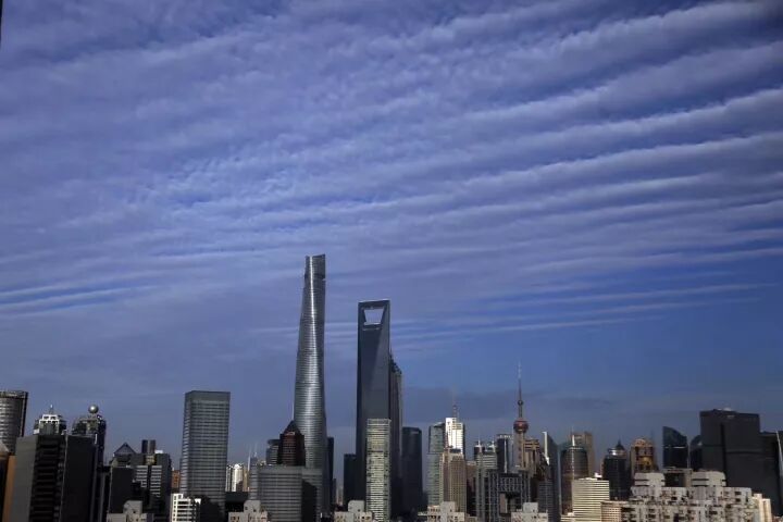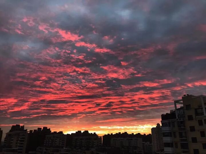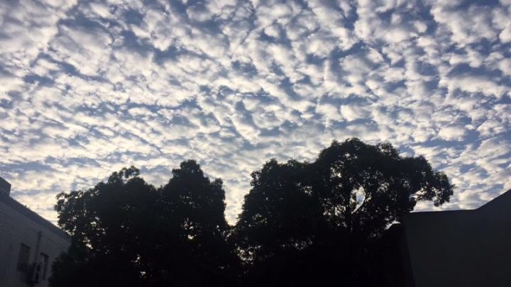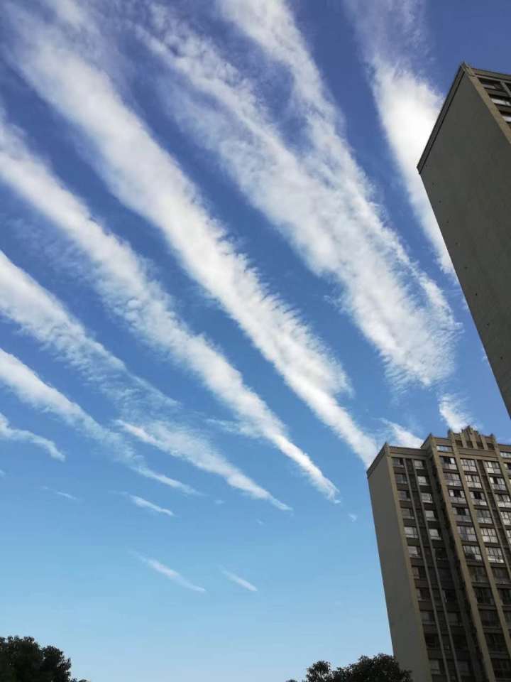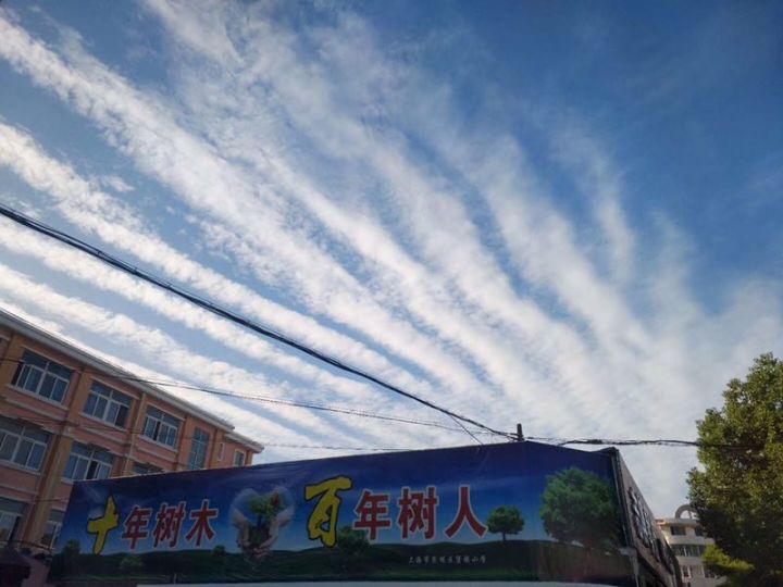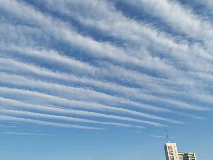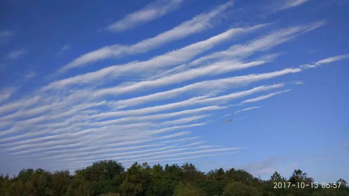 今早出现的叫做“高积云” ,主要是透光高积云 ,呈现出波状、絮状、鱼鳞状等。