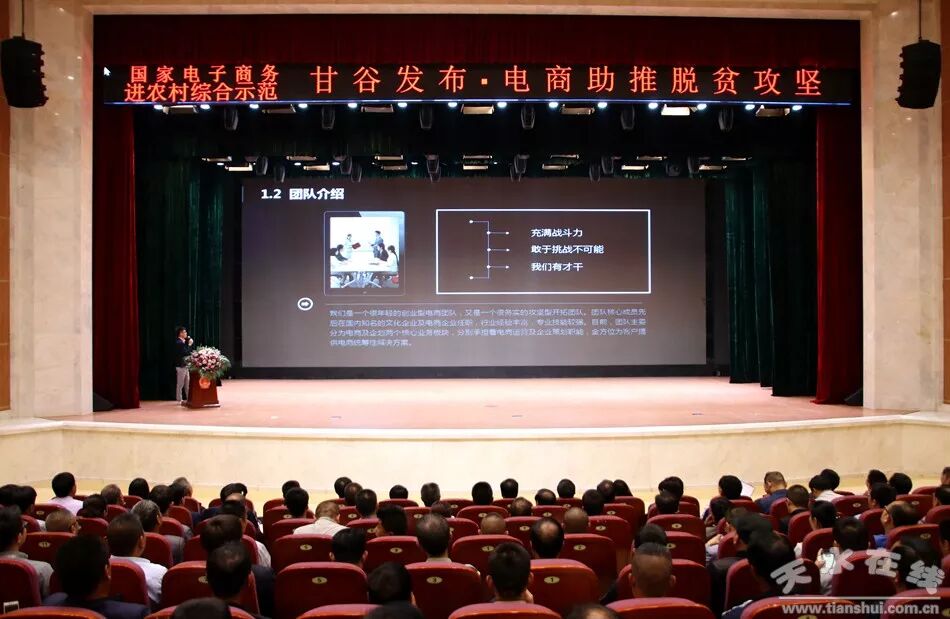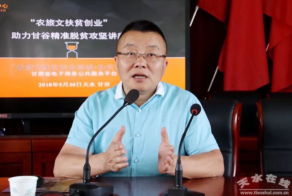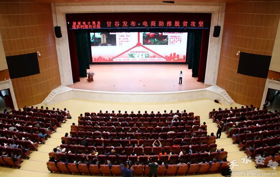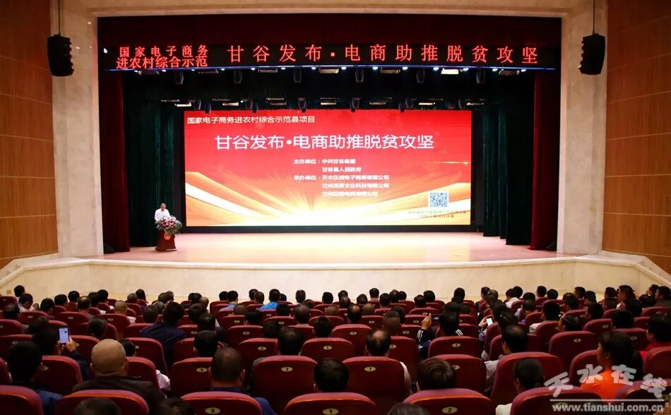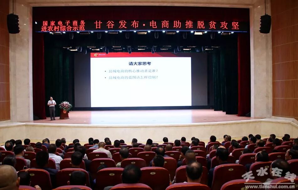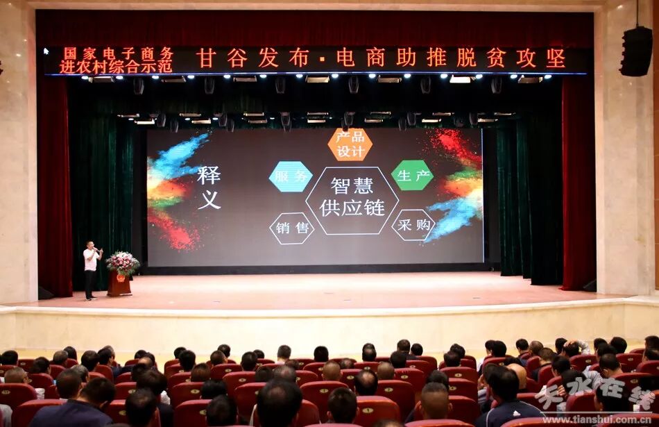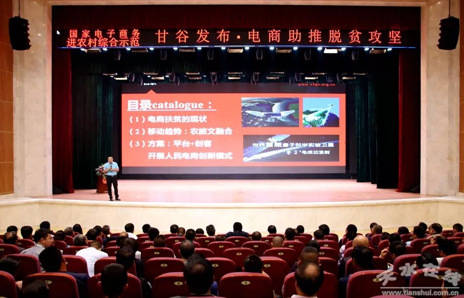 天水在线甘谷县报道 5月30日,国家电子商务进农村综合示范项目甘谷发布·电商助推脱贫攻坚系列活动启动仪式在甘谷大剧院举行。天水在线特邀商务部电商司、中国国际电商中心、农业部管理干部学院特聘的县域电商核心专家、网策电商集团创始人徐大地作了题为《县域电商战略规划》的专题讲座;甘肃省电子商务公共服务平台主任、甘肃省电子商务职教集团客座教授、甘肃华企联线网络科技有限责任公司总经理李强作了题为《农旅文融合电商助力脱贫攻坚》的专题讲座。天水在线通过今日头条对发布仪式进行了全程网络直播。