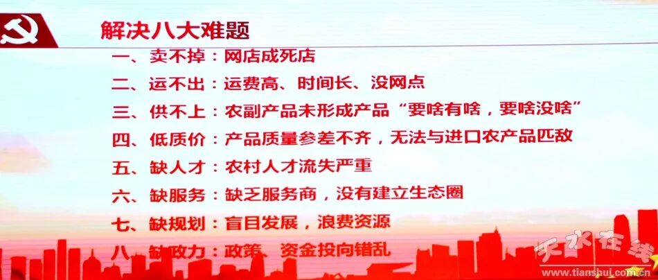 当日下午,天水在线还邀请商务部电商司、中国国际电商中心、农业部管理干部学院特聘的县域电商核心专家、网策电商集团创始人徐大地和甘肃省电子商务公共服务平台主任、甘肃省电子商务职教集团客座教授、甘肃华企联线网络科技有限责任公司总经理李强两位专家分别赶赴大像山镇和六峰镇为镇村干部、产业大户、贫困户等做了专题讲座。