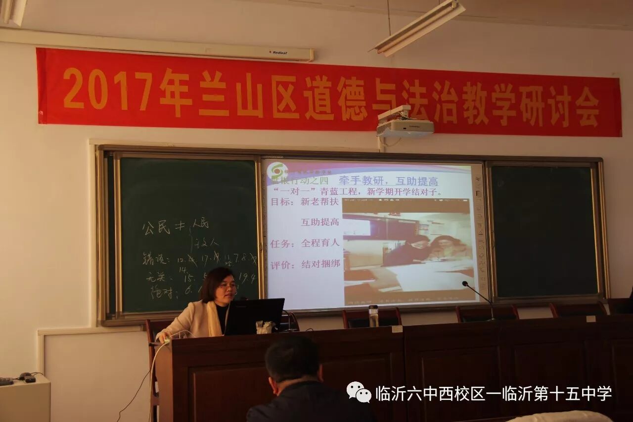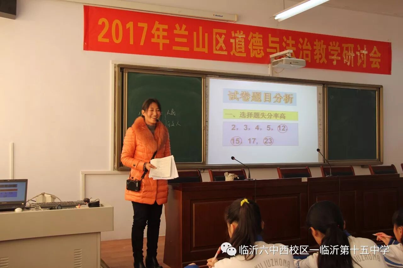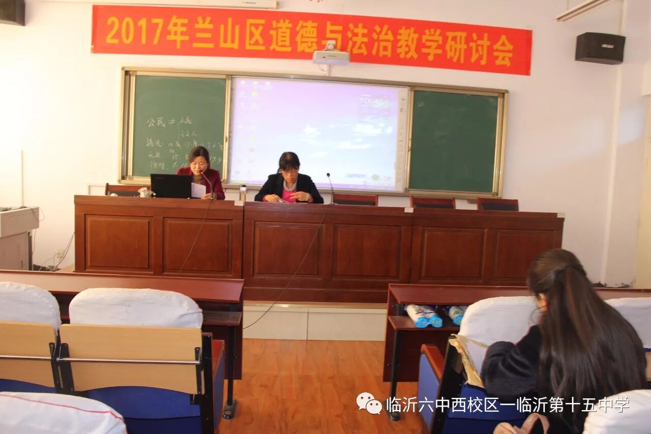 11月23日上午,兰山区初中道德与法治教学研讨会在临沂第十五中学召开,全区学科教研组长、备课组长参加了会议,我校全体道德与法治老师全程参与会议观摩学习。