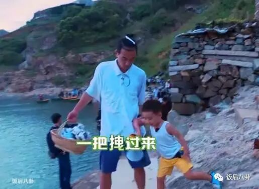 Jasper有点怕怕跟爸爸保持距离,独自走在斜坡上,陈小春一把将儿子拽到自己身前……