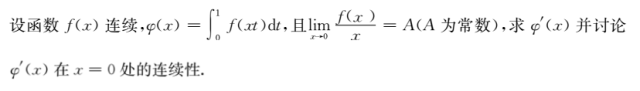 这是一道综合性题目,也是一道往年的真题!主要涉及变限积分函数求导、分段函数求导以及连续性的判定(极限值等于函数值),不少考生未能正确表示出ψ(x)的表达式,尤其是ψ(x)=0没看出来,导数求导的环节不够完整,后面连续性的讨论更是无从谈起。