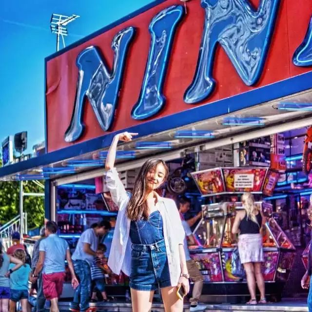 拍照时如何摆造型?学她就对了!比如在游乐场,不要呆呆站着,要笑。