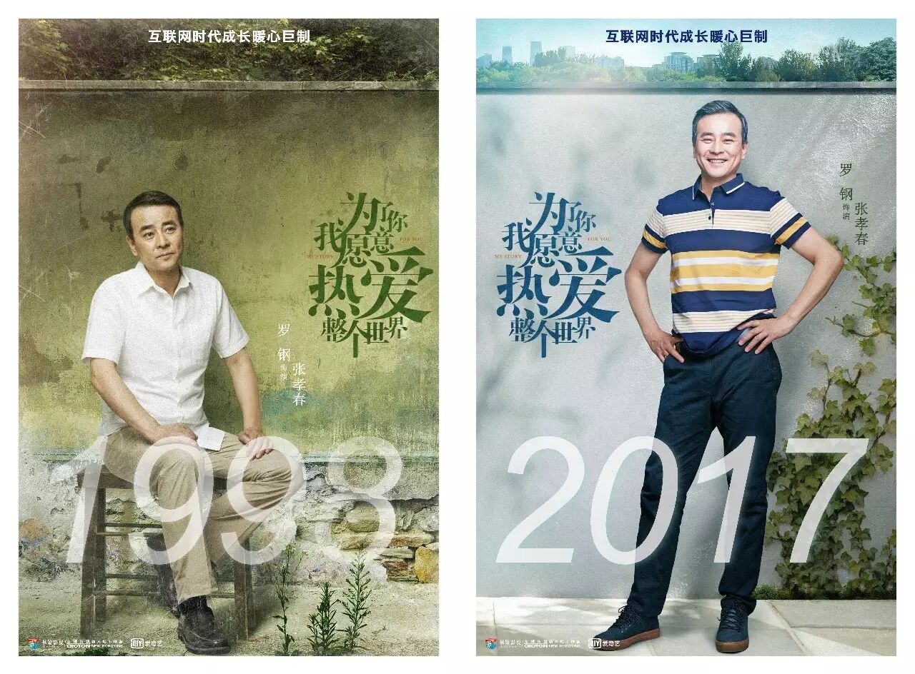 在海报中,98年的罗晋身着一身经典蓝色运动衣,是个初入社会,对未来充满期待的青涩少年;而右边17年的他则以一身干练的西装造型,诠释了多年后事业有成、从容自信的自己。年代的跨越感在罗晋两个不同的造型中展现地恰到好处,游刃有余。