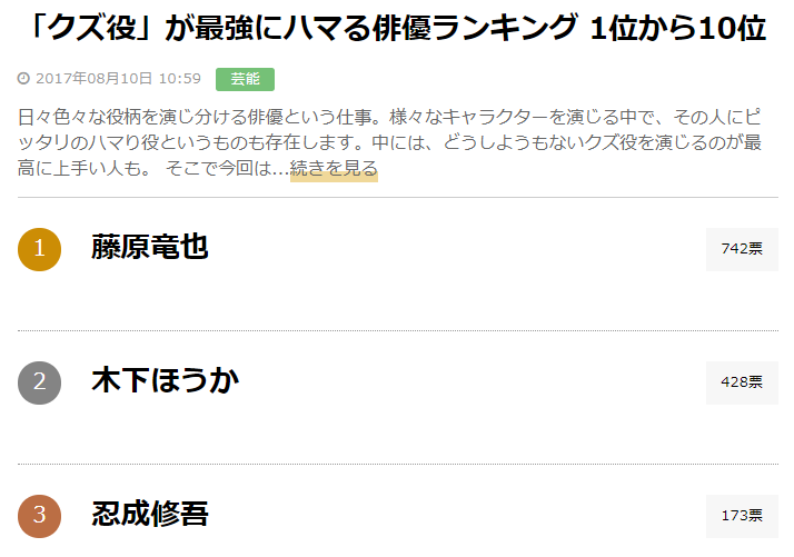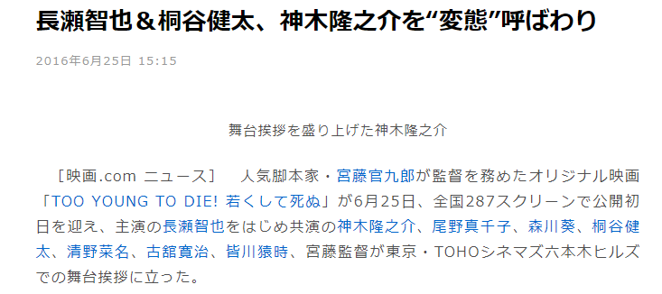 最后这个被称为踏平J家的男人——忍成修吾。其实明明长得不错,颜值相当高,但是总体资源不佳,也是因为常常出演配角才得此称号吧。