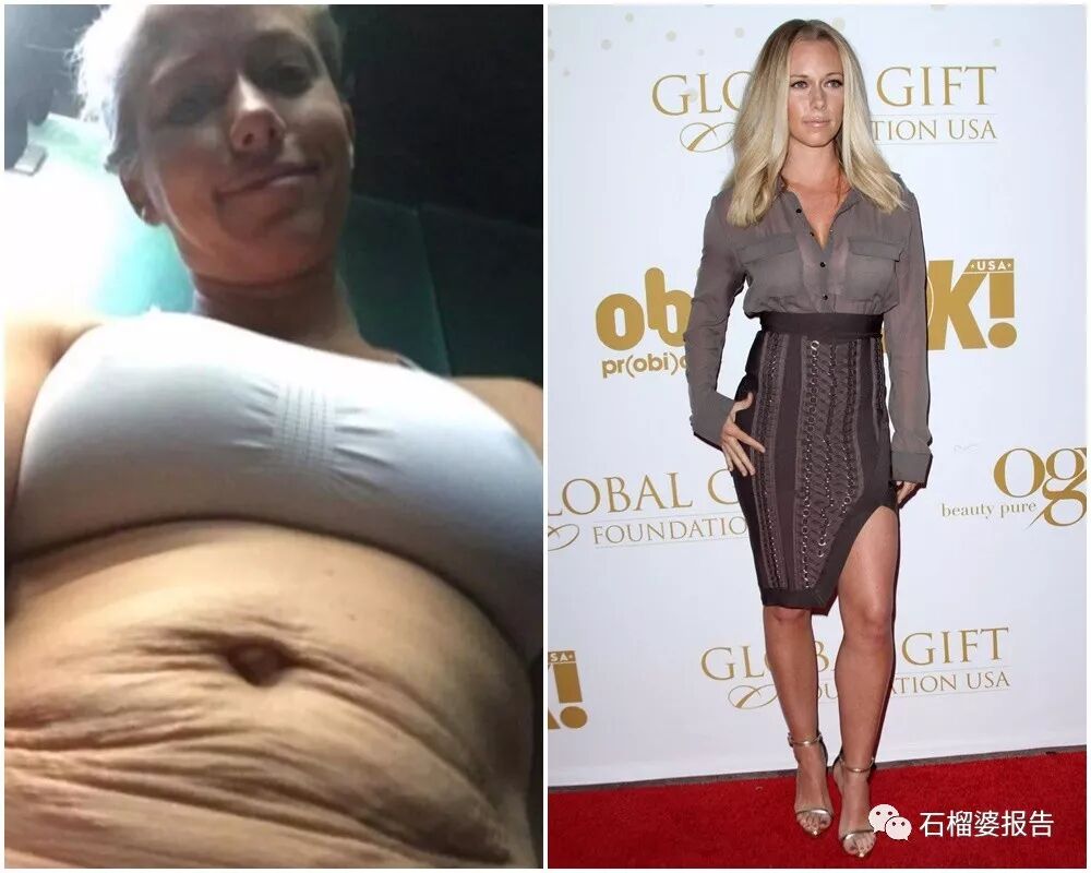 这组照片我记得当时得到了很多表扬,因为她大方展示,女性的肚子不是生好就能立刻恢复原样。