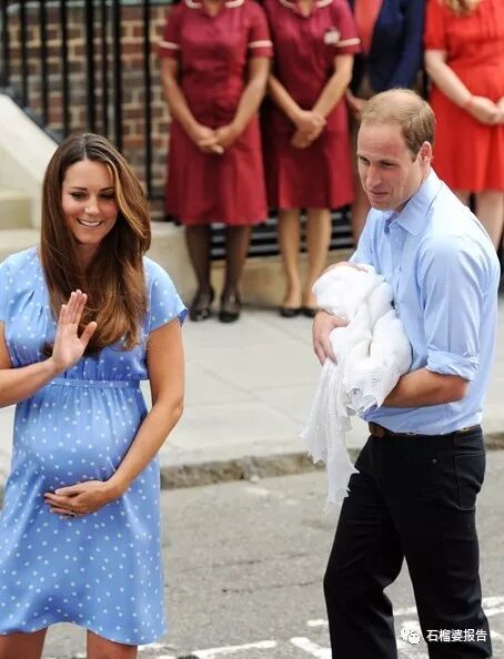 凯特王妃当年生好大儿子乔治出院,肚子还很明显。